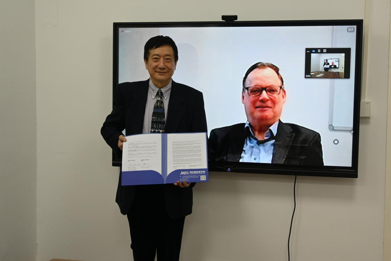 签约仪式上,孔英经理与John Board经理进行了简短的问候后,共同签署合作框架协议。孔英经理指出,该合作协议的签署,有利于双方加强优势互补和资源融合,联合培养具有国际视野的人才,为湾商学子提供优质的国际留学机会,为大湾区经济的发展提供有力的人才支撑。