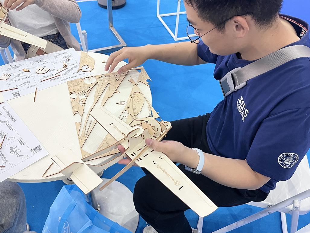 在互动体验环节,同学们积极参与飞机模型搭建活动。在专业工作人员的悉心指导下,他们全神贯注地投入到微型飞行器的制作过程中。“动手过程让我意识到,科技创新不仅需要理论支撑,更依赖精益求精的工匠精神。”一名参与活动的员工在完成模型后分享道。