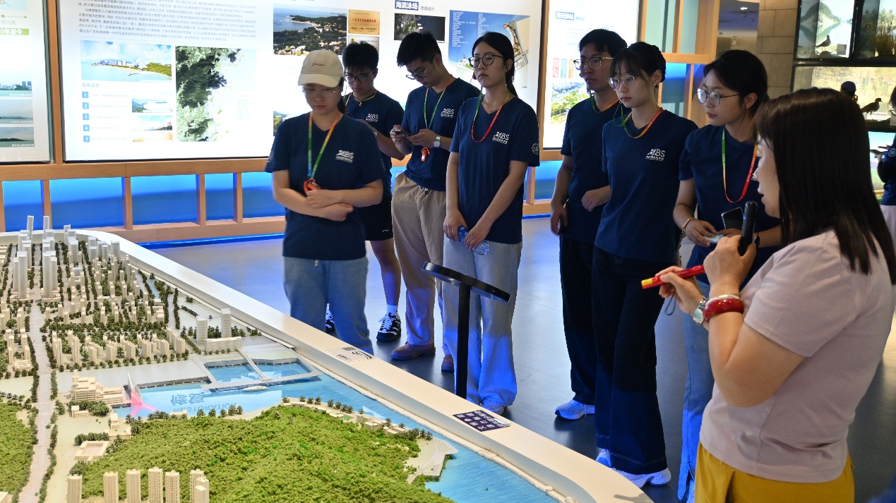 首站抵达的珠海市博物馆与规划展览馆,通过丰富的实物展品、动态影像和详实图文,构建起立体的城市记忆与发展蓝图。从古代的渔耕文明,到近代的开埠历程,再到改革开放以来的创新发展,同学们在每一段历史前驻足凝思。站在城市规划沙盘和“一带九湾”模型前,大家对珠海作为“未来之城”“百岛之城”“幸福之城”“生态之城”的发展愿景有了更具象的了解。