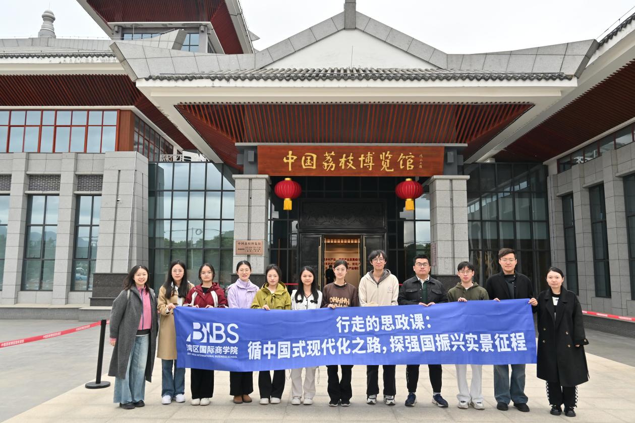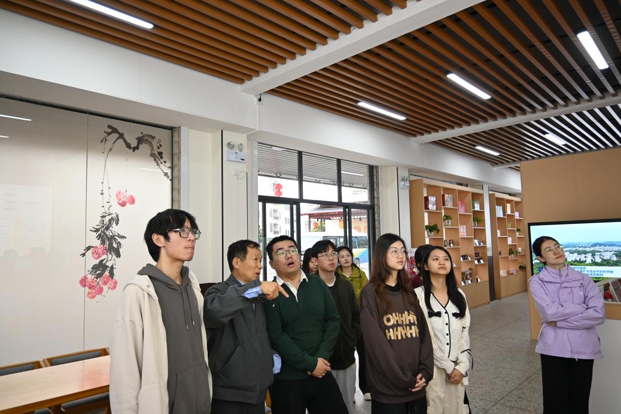 离开贡园后,大家来到了高州市根子镇柏桥村的高州市荔枝产业链党委展示大厅。高州荔枝产业链党委成立于2022年,自成立以来,便致力于将党的政治优势和组织优势转化为产业发展的强大动力,推动荔枝产业不断发展壮大,在乡村振兴的道路上描绘出了一幅“富民路上党旗红”的绚丽画卷。一年多前,习近平总书记亲临茂名高州调研时,就对荔枝产业的发展寄予厚望,强调要进一步提升荔枝种植、保鲜、加工等技术,推动荔枝特色产业与特色文化旅游协同发展。高州荔枝产业链党委牢记总书记的嘱托,积极作为,引导链上企业在贮运保鲜、技术攻坚、精深加工等多个关键领域持续发力,使荔枝产业发展水平得到了显著提升。师生们在参观展览的过程中,深入了解了高州市通过党建赋能推动产业发展的一系列创新举措,对高质量发展的内涵有了更为深刻的感悟。