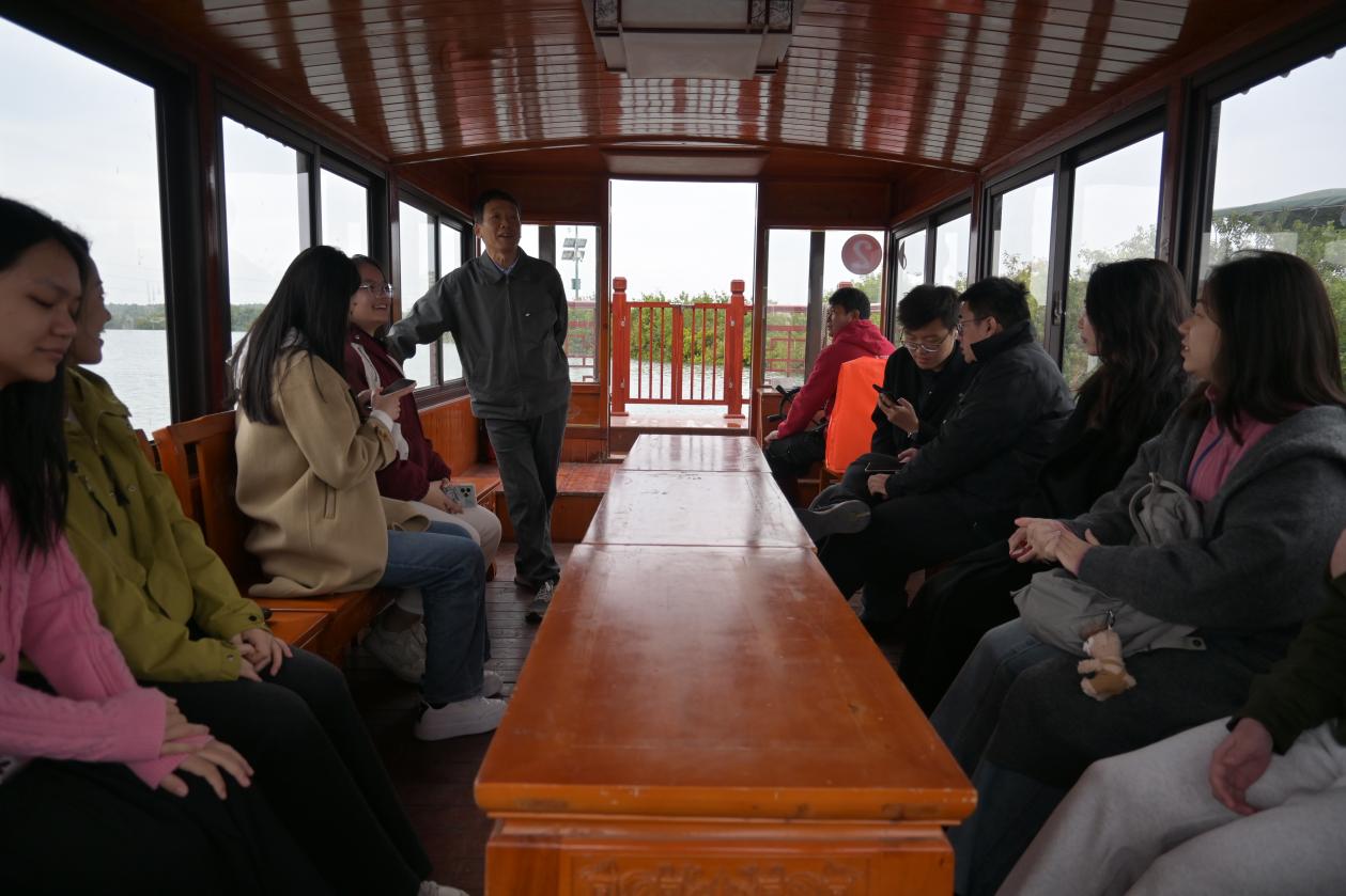 随后,师生们前往湛江红树林国家级自然保护区东部的麻章区湖光镇金牛岛红树林片区。踏入保护区,门口“绿水青山就是金山银山”几个大字在阳光下熠熠生辉。登上游船,大家缓缓驶入红树林深处,开启与红树林亲密接触之旅。金牛岛内,红树林品种丰富,白骨壤、秋茄、红海榄等长势喜人,它们像忠诚的卫士,默默守护着这片海域。